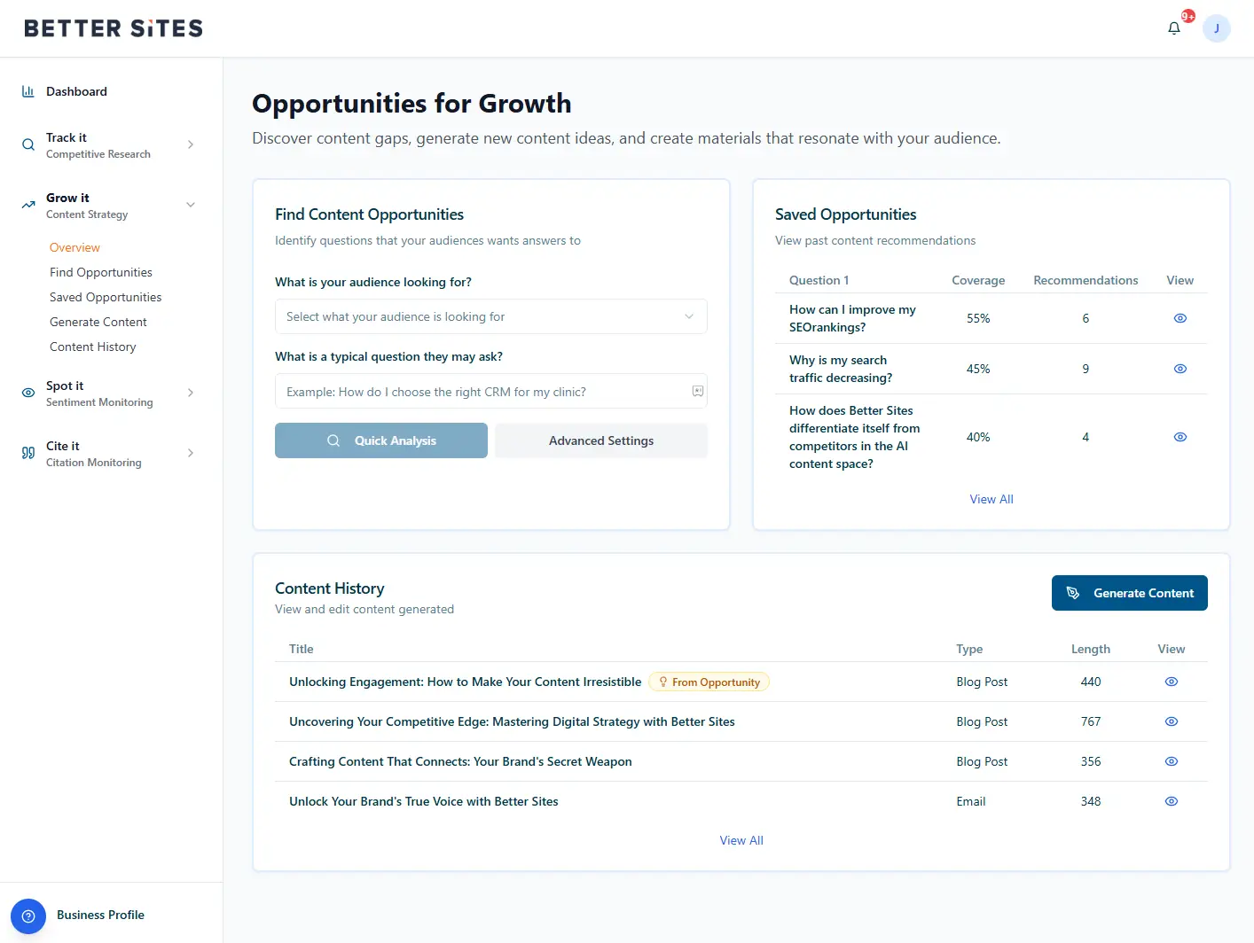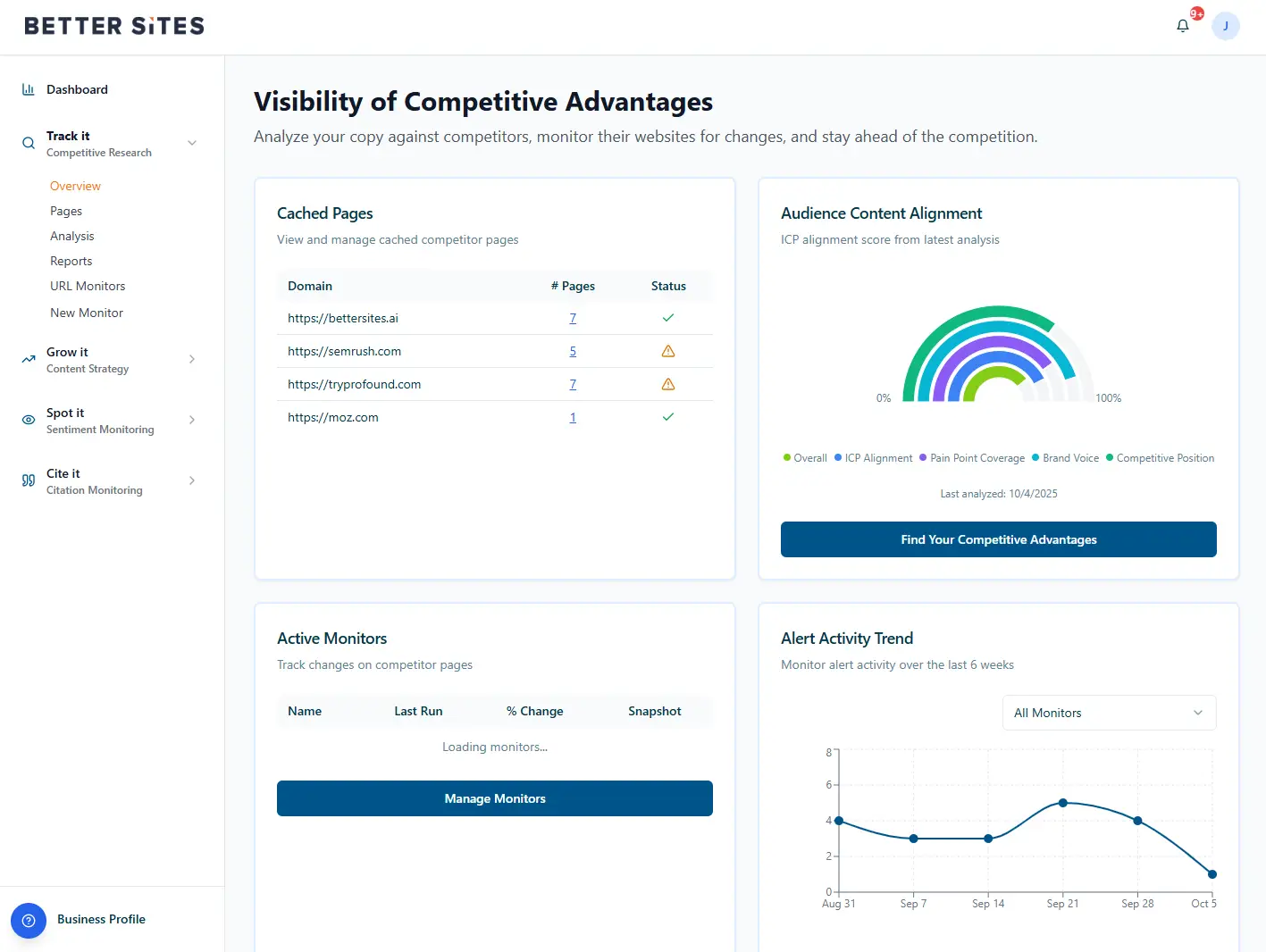 Be the first to use BETTER SITES. That means competitor intel, content insights, and AI copy magic before your rivals even know it exists.
